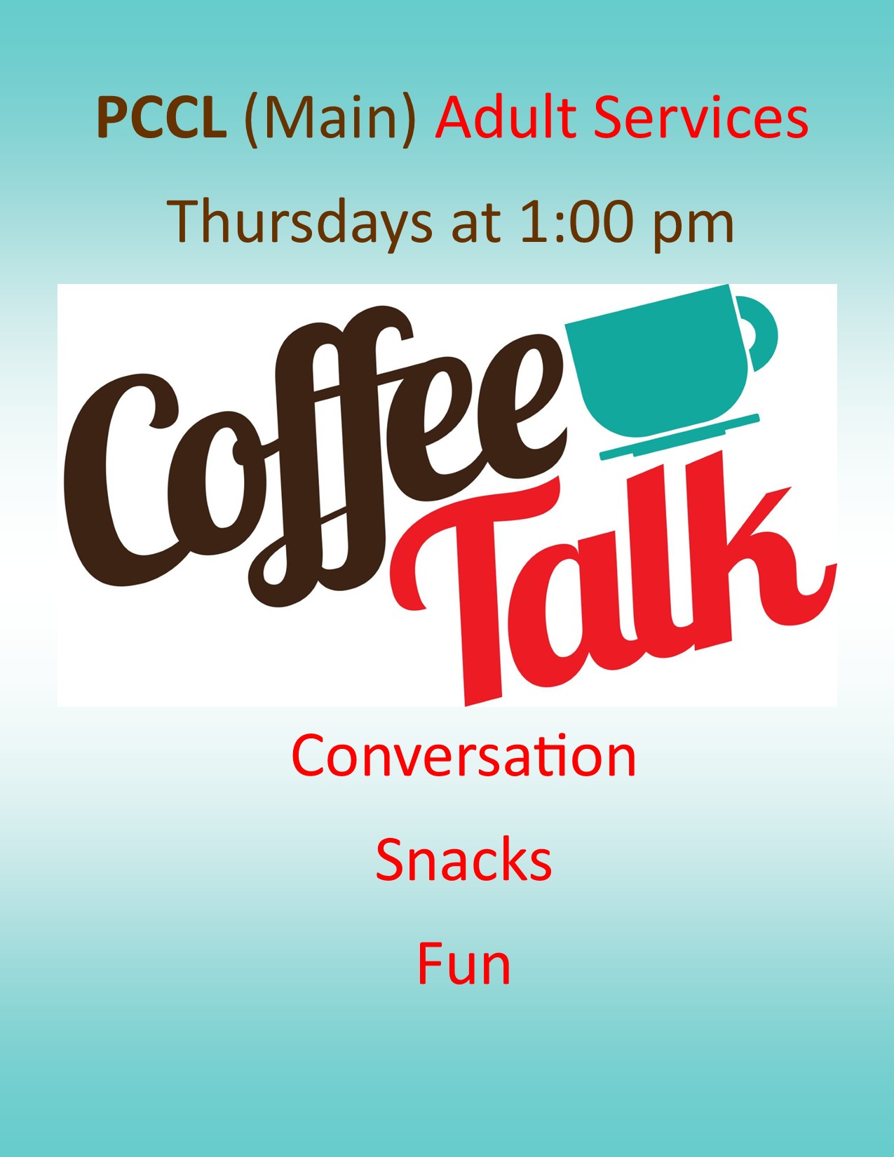 Cooper Community Library Adult Cookbook ClubStop in and check out our cookbook selection and join us with a new recipe. Make a new recipe with one of our cookbooks and bring it in the share and sample all the different treats this monthLocation: The Cooper Community Branch Library |