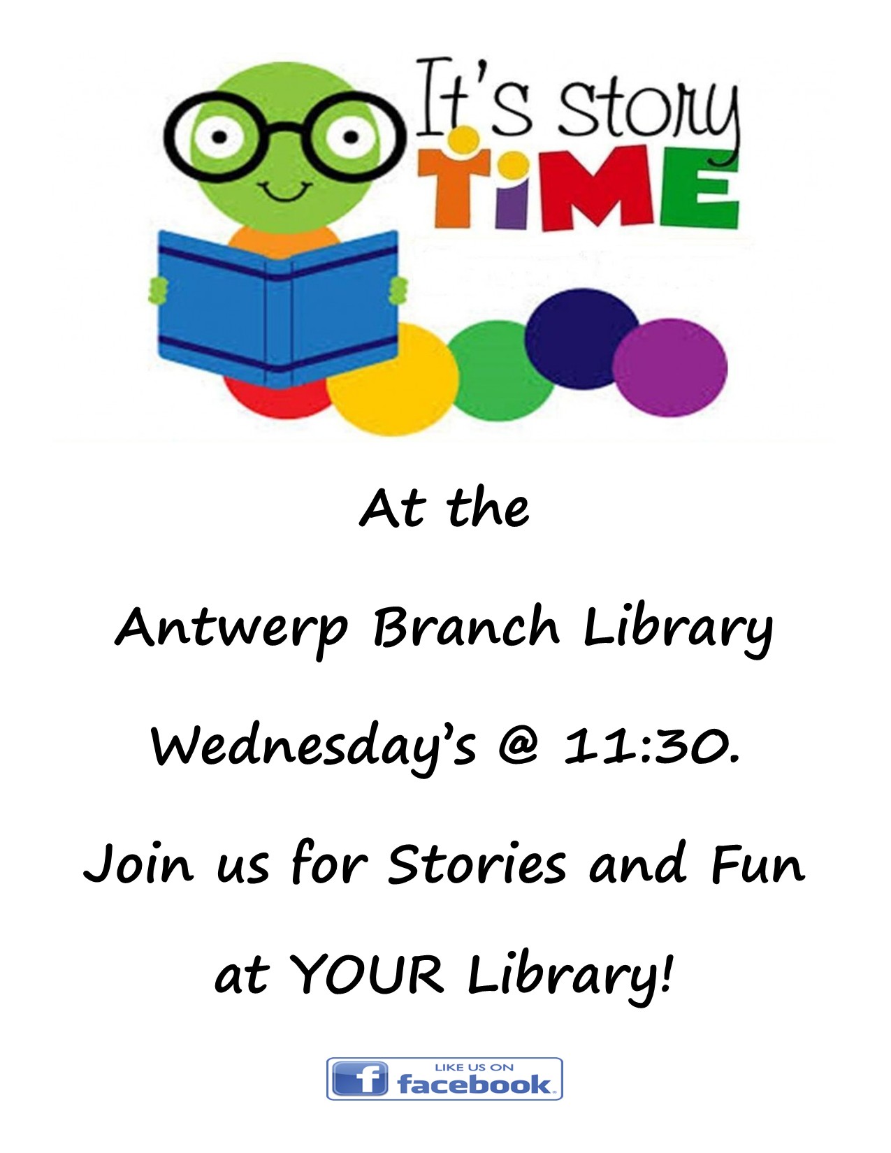 Antwerp-Story TimeJoin us for Story Time Fun! With Books, games and crafts!Location: The Antwerp Branch Library |