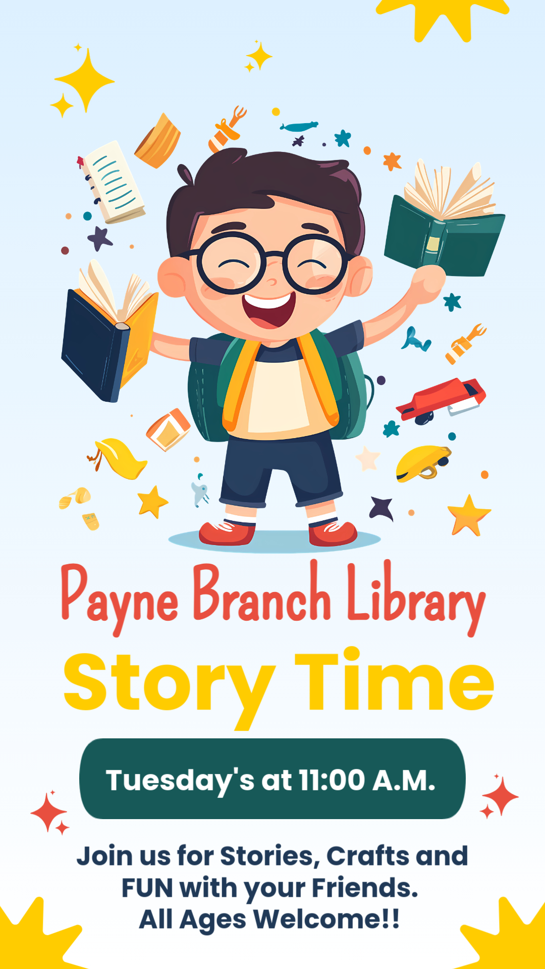 Payne Branch Library StorytimeJoin us for stories, crafts and FUN with your friends at the Library!Location: The Payne Branch Library |